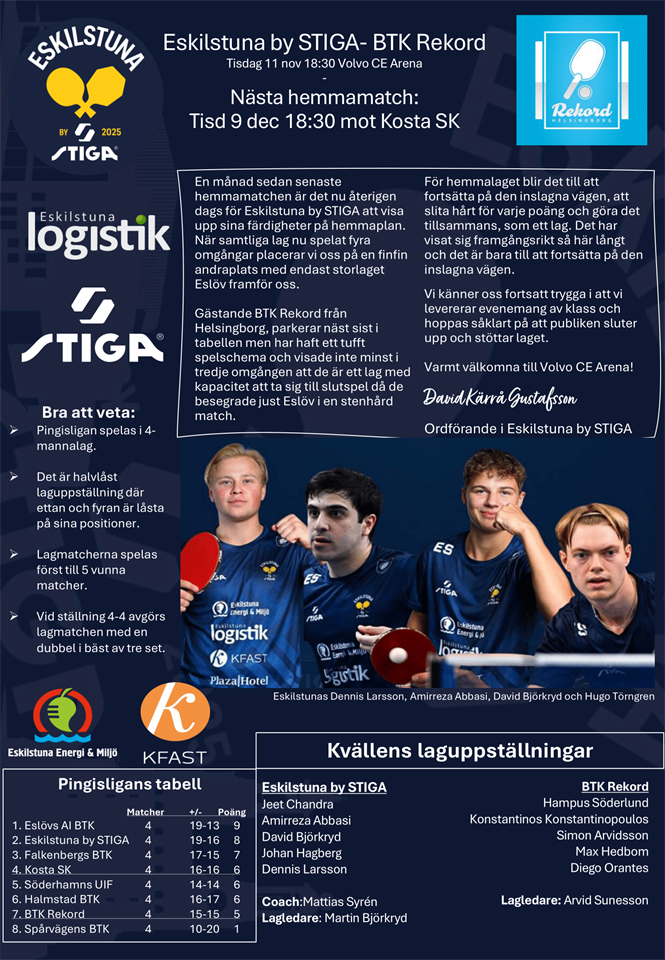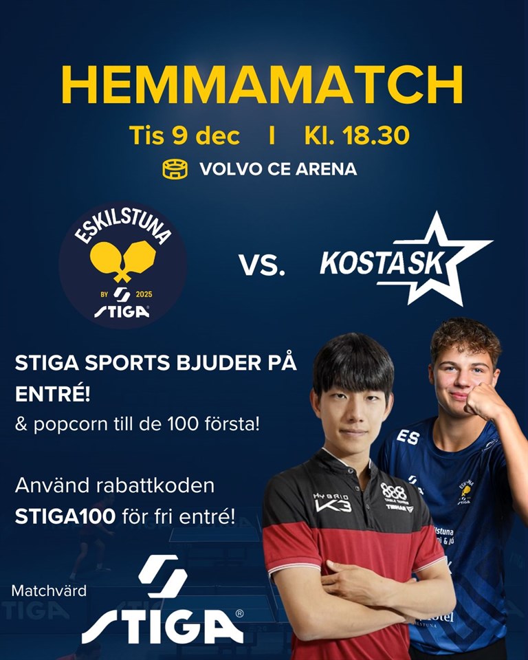 | Kosta SK - Eskilstuna by STIGA | 16 dec, 18:30 |